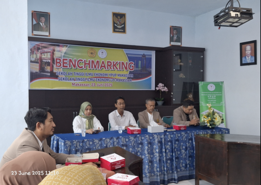 Makassar, 23 Juni 2025. Program Studi D3 Akuntansi STIE-LPI Makassar melaksanakan kunjungan ke program Studi S1 Akuntansi STIE YPUP Makassar. Kunjungan tersebut bertujuan untuk melakukan benchmark kurikulum di Unikom bidang akuntansi, terutama untuk mencari pengalaman program studi D3 Akuntansi dalam membentuk dan menjalankan mata kuliah kurikulum yang diselenggarakan di sana. Hasil dari benchmark kurikulum tersebut diharapkan dapat menjadi masukan bagi penentuan arah dalam pembaharuan kurikulum prodi D3 Akuntansi.