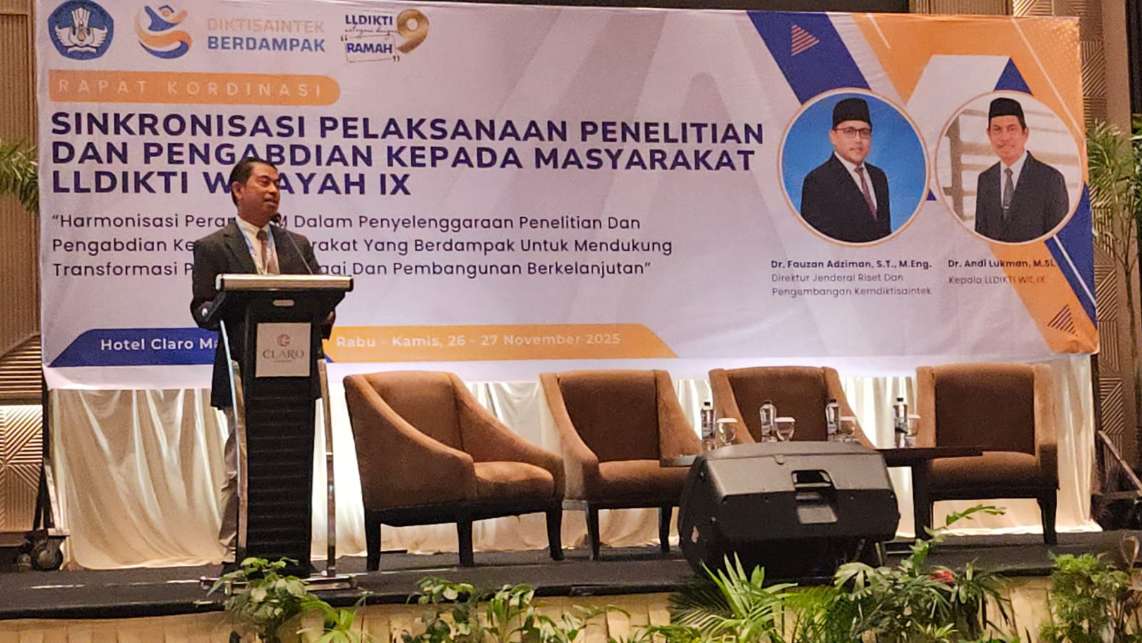 Lembaga Layanan Pendidikan Tinggi (LLDIKTI) Wilayah IX menyelenggarakan kegiatan Sinkronisasi Pelaksanaan Program Penelitian dan Pengabdian kepada Masyarakat pada 26–27 November 2025 di Hotel Claro Makassar. Kegiatan ini diikuti oleh seluruh Kepala LPPM perguruan tinggi se-Wilayah IX yang meliputi Provinsi Sulawesi Selatan, Sulawesi Barat, dan Sulawesi Tenggara.